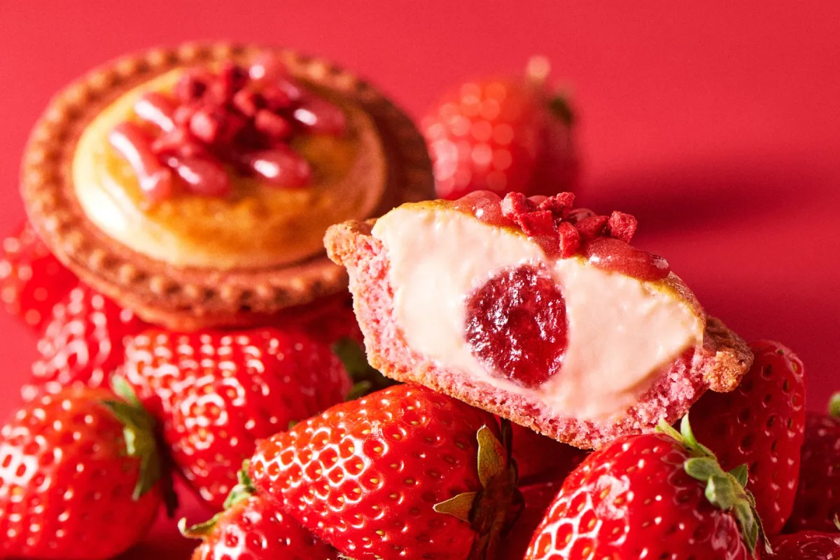 「BAKE CHEESE TART」は、2026年の春、新作として「焼きたてタルト 濃苺チーズ」を発売します。このタルトは、毎年人気を誇る苺のチーズタルトの進化版です。今年は例年以上に苺感が際立つ内容となっています。特に注目すべきは、福岡県産のあまおう苺を使用したジャムが加わった点です。