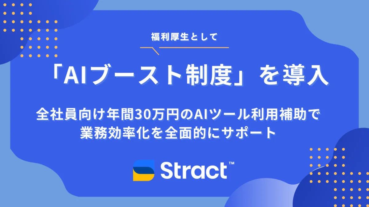 株式会社STRACT(本社:東京都千代田区)は、全社員を対象に新たな制度「AIブースト制度」を導入しました。この制度では、年額最大30万円までのAIツール利用料を補助することで、業務の効率化を支援します。この取り組みは、2025年7月から実施される予定です。