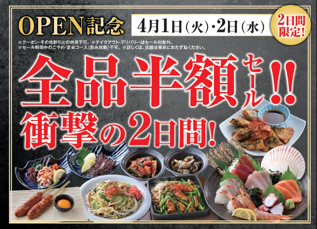 新たな「魚民 下関東口駅前店」のオープンに際し、特別なセールが実施されます。セールは