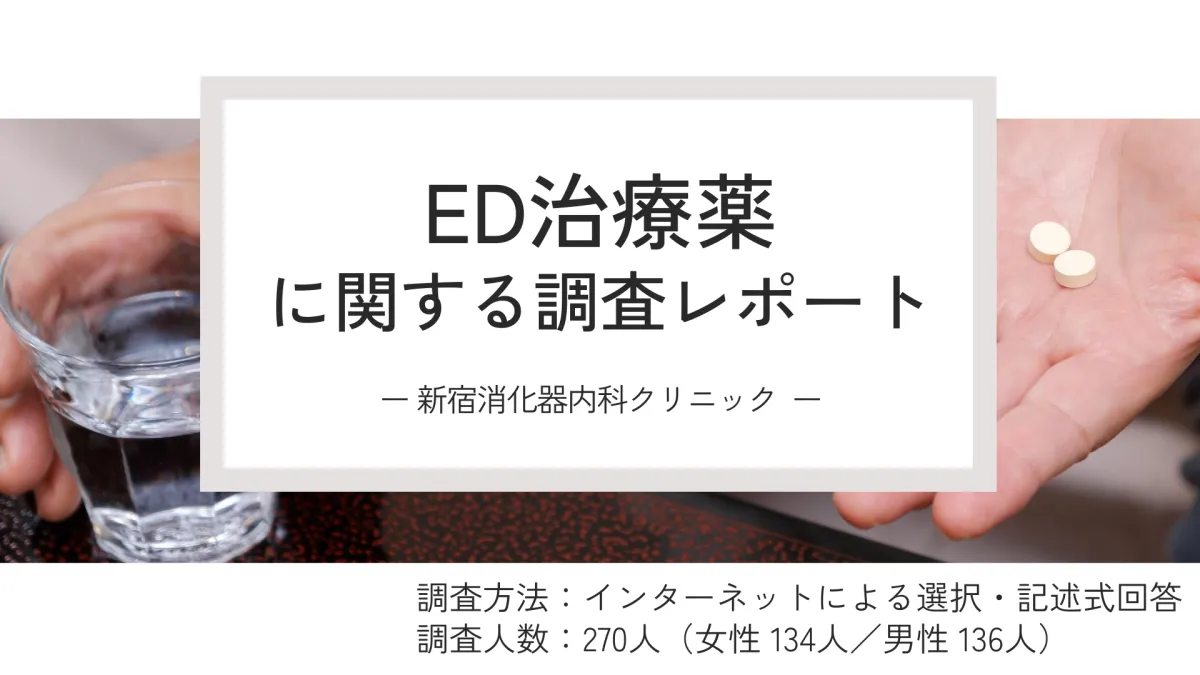 最近、ED(勃起障害)治療薬を処方箋なしでドラッグストアで購入できる法整備が進むとのニュースが注目されています。新宿消化器内科クリニックはこの件に関し、270人を対象にしたアンケート調査を行い、その結果が明らかになりました。