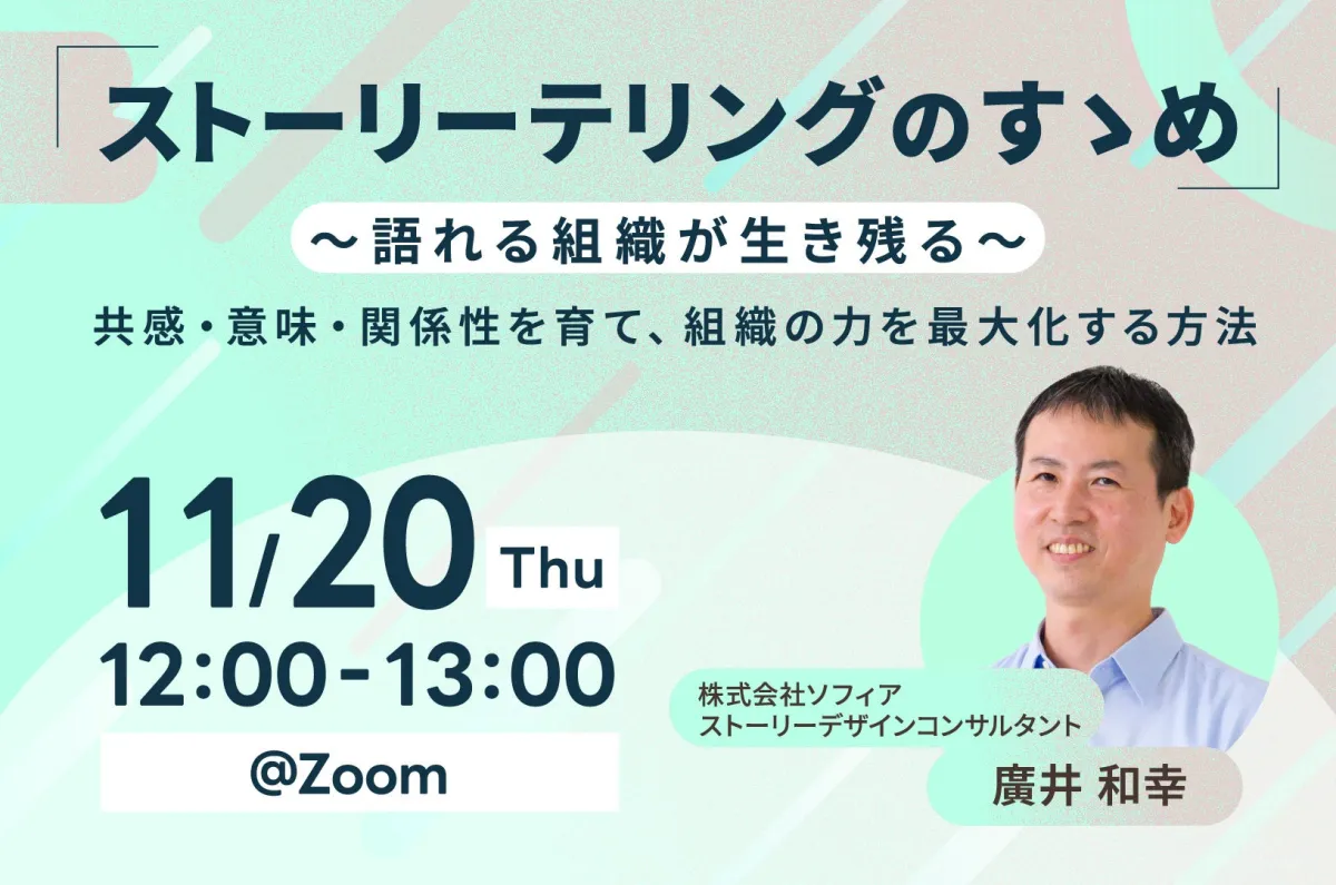 株式会社ソフィア(東京都港区麻布十番)は、今度の11月20日(木)に「ストーリーテリングのすゝめ 〜語れる組織が生き残る〜」というテーマで無料セミナーを開催します。これは現代の組織が直面している課題を解決するための機会です。