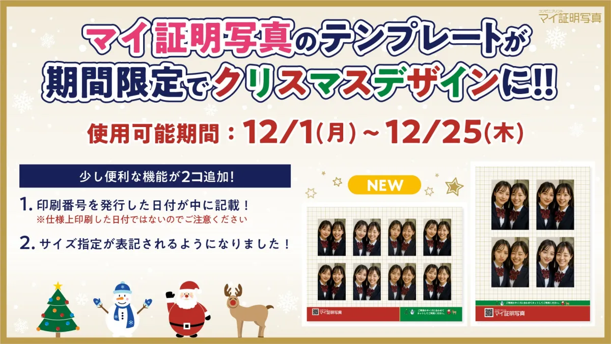 便利と楽しさがアップ!『マイ証明写真』のクリスマス台紙