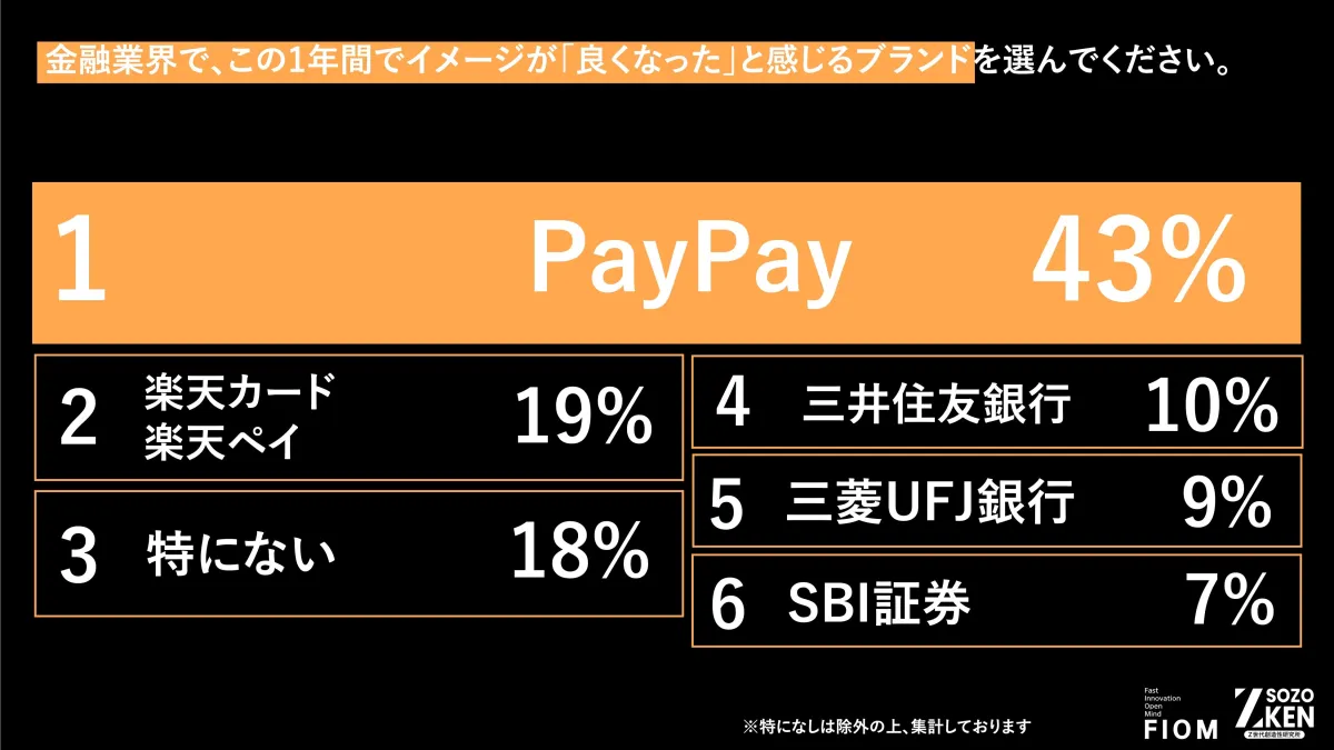 次に支持されたのは『楽天カード』で、19%のZ世代がイメージの改善を評価しました。特に、初めてクレジットカードを作る際のハードルが低く、楽天経済圏でのポイント還元が魅力です。この経済圏は、買い物でポイントをざくざく貯められるため、非常にコストパフォーマンスの良い選択肢となっています。Z世代は、同じ金額を支払うならポイント還元に敏感であり、それが「ポイ活」の活動を楽しむ観点にもつながっています。