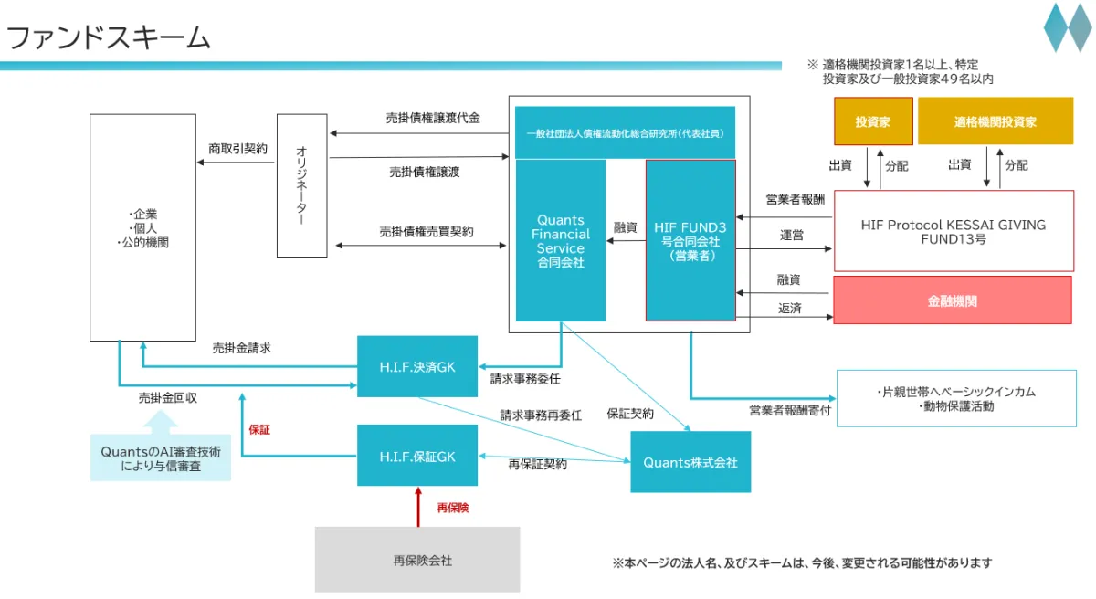 HIF FUND13号はQuantsとの資本関係がないため、適格機関投資家からの資金調達を行っており、倒産時もリスクが分散される設計になっています。