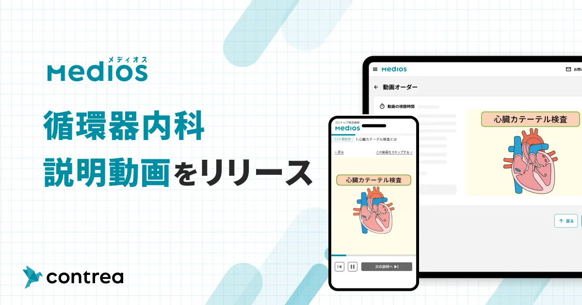 Contrea株式会社が提供する患者説明動画サービス『MediOS』は、このたび循環器内科向けにおいて新たなコンテンツを発表しました。心臓カテーテル検査とカテーテルアブレーションに関する詳細な説明動画をリリースすることで、患者さんへの情報提供の質を向上させることを目指しています。