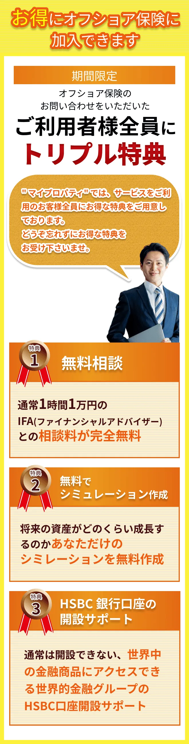 オフショア投資に特化した企業、マイプロパティは、海外駐在員を対象に資産運用に関するセミナーを行います。このセミナーでは、オフショア保険の実際的な利用方法や成功事例について詳しく紹介します。さらに新たなサービスや改善に努めているマイプロパティは、今後も日本人の投資サポートを行うことを目指しています。