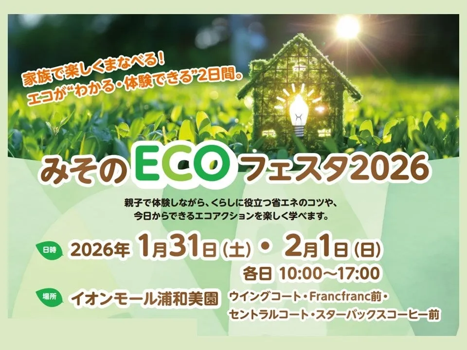 埼玉県の地元で行われる「みそのECOフェスタ 2026」が、イオンモール浦和美園で開催されます。このイベントは、脱炭素社会の実現に向けた施策の一環として、住まいや暮らしにおける省エネを推進することを目的としています。具体的には、埼玉県、埼玉県住まいづくり協議会、美園タウンマネジメント協会が連携して行います。