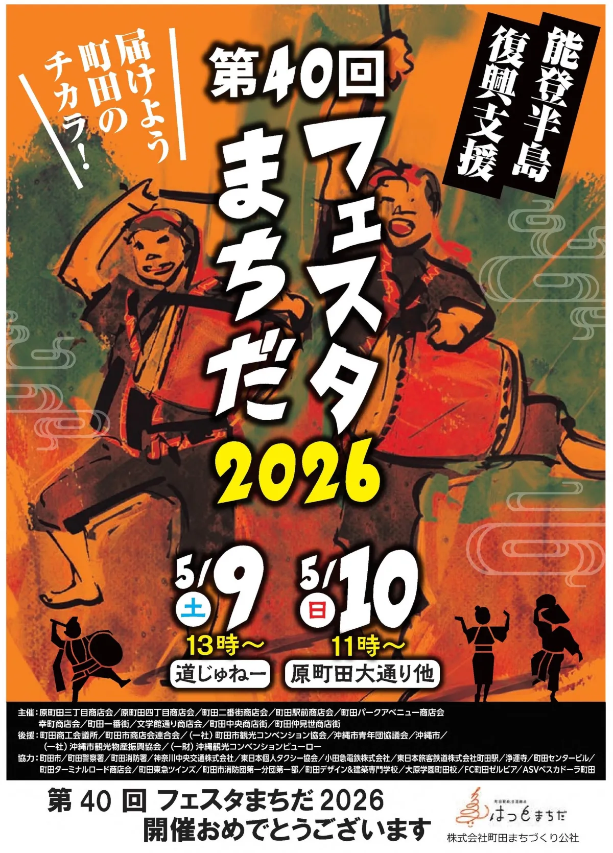 来る5月9日、10日、市民や観光客が集うこの楽しい祭典をお見逃しなく!詳しい情報は「フェスタまちだ2026実行委員会」までお問い合わせください。