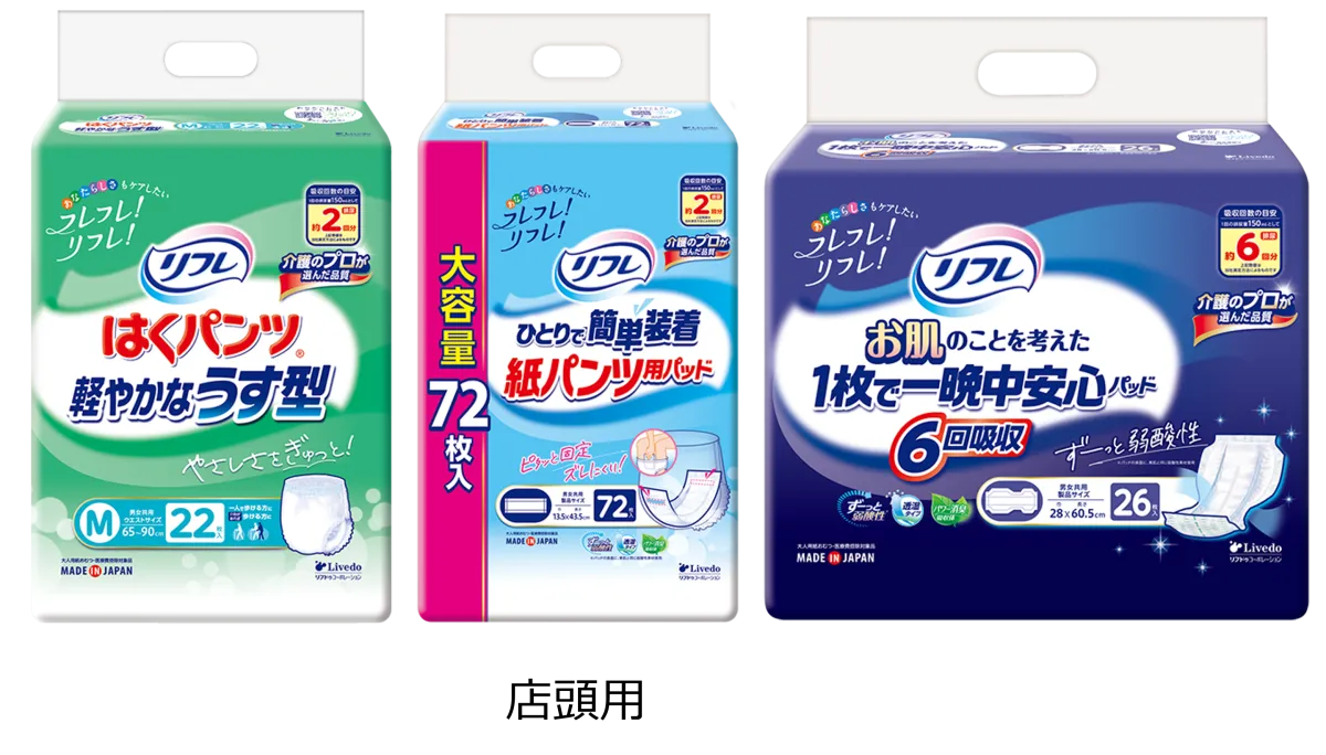 大人用紙おむつブランド『リフレ』のパッケージデザイン刷新