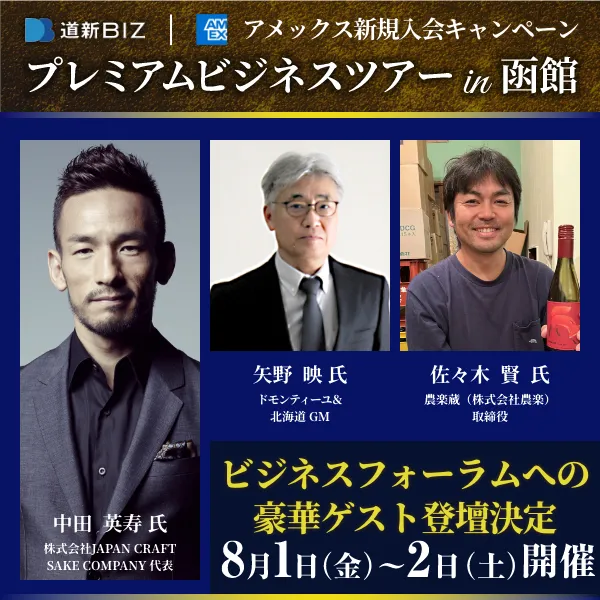 2025年8月、道新BIZが主催する「プレミアムビジネスツアー in 函館」が開催される。このイベントは、アメリカン・エキスプレスのビジネス・カードに新規入会をした会員を対象に、8月1日から2日まで行われる。