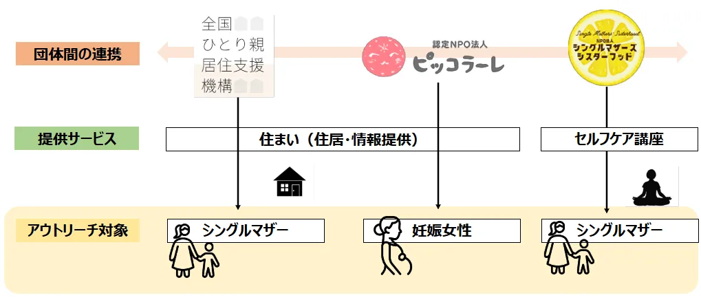 - - NPO法人全国ひとり親居住支援機構: 母子家庭への居住支援を提供。