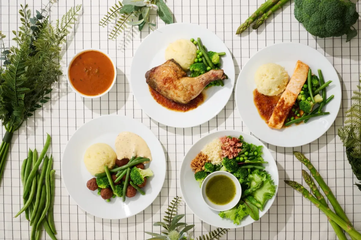 イケアの春の限定メニューは、五感を楽しませる内容です。特に注目すべきは、大人気のチキンコンフィ。これにガーリックソースを合わせることで、香り高い一品に仕上げています。鮮やかな緑野菜と共に彩られ、食欲をそそります。