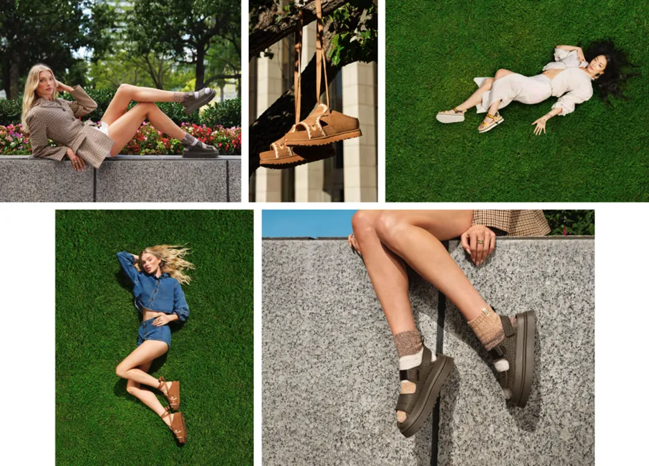 「変わらない心地よさ、変わらないUGGを、一年中」というメッセージが込められています。昨年の秋冬キャンペーンに続き、今回のキャンペーンでもエルザ・ホスクとリナ・サワヤマが登場し、UGGの進化するスタイルを体現しています。彼女たちが纏うのは、ブランドの象徴的なチェスナットカラーのClassic Ultra Miniや、新たなサンダル・クロッグのラインナップで、活気ある春のスタイルを引き立てています。