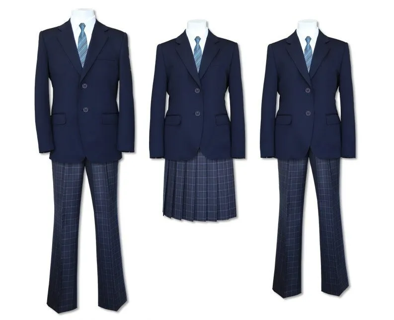 新しい制服のデザインは、深みのあるダークネイビーのブレザーが特徴で、同系色のネイビーと組み合わせることで引き締まった印象を演出。ボトムスには、ゆったりしたスタイルと細身スタイルの2タイプのスラックスとスカート、さらにはキュロットタイプも新たに採用されています。また、夏用には一般的なカッターシャツに加えて、ポロシャツの採用も決定しました。