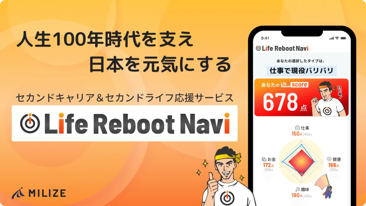 株式会社MILIZE(本社:東京都港区、代表取締役社長:田中 徹)は、2024年10月10日に新たなAIサービス「Life Reboot Navi(ライフリブートナビ)」のベータ版を発表しました。このサービスは、人生100年時代においてセカンドキャリアやセカンドライフを支援することを目的としており、将来に向けた準備状況をAIによってスコア化し、様々な情報やアドバイスを提供します。