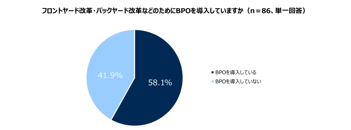 パーソルビジネスプロセスデザイン株式会社が実施した調査によると、全国86の自治体が回答し、58.1%がフロントヤードやバックヤード改革のためにBPOを導入していることが判明した。これは、自治体がデジタル活用を進め、住民サービスの向上を目指す中で、外部の専門企業への業務委託が一つの解決策として受け入れられていることを示すものだ。