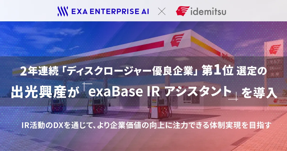 出光興産株式会社が、今期も「証券アナリストによるディスクロージャー優良企業選定」においてエネルギー部門で二年連続の第1位に選出されたことを受け、さらに質の高い情報開示を目指して、新たに株式会社Exa Enterprise AIの「exaBase IRアシスタント」を導入しました。この決定は、企業がますます高まる市場の期待に応えるための重要なステップです。