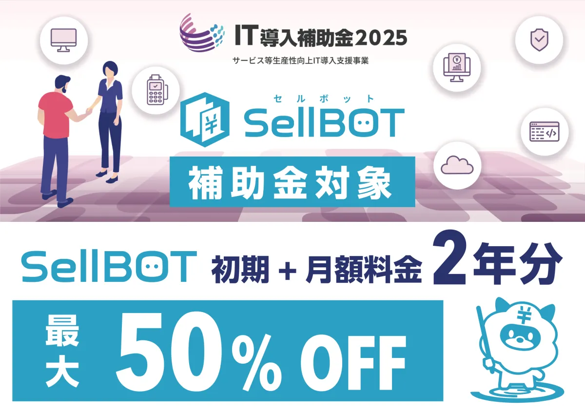IT導入補助金は、業務効率化やDX化を促進するためのITツールの導入を後押しし、企業が新しい技術を取り入れる際の負担を軽減する取組です。2022年7月のリリース以来、『SellBOT』は多くの企業に導入され、その効果が実証されました。この度の採択は、初めてのこととなります。