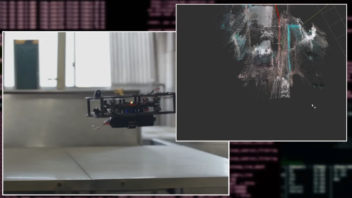 アイ・ロボティクスの技術は、GPSに頼らずに屋内外を自由に飛行できるドローンを実現しています。特に、リチウムイオンバッテリーを使用したドローンは、LiDARや高解像度カメラを搭載し、周囲の空間情報をリアルタイムで取得します。この情報は、即時に3D点群やデジタルツインとして生成され、現場環境の変化を仮想空間上に反映し続けます。