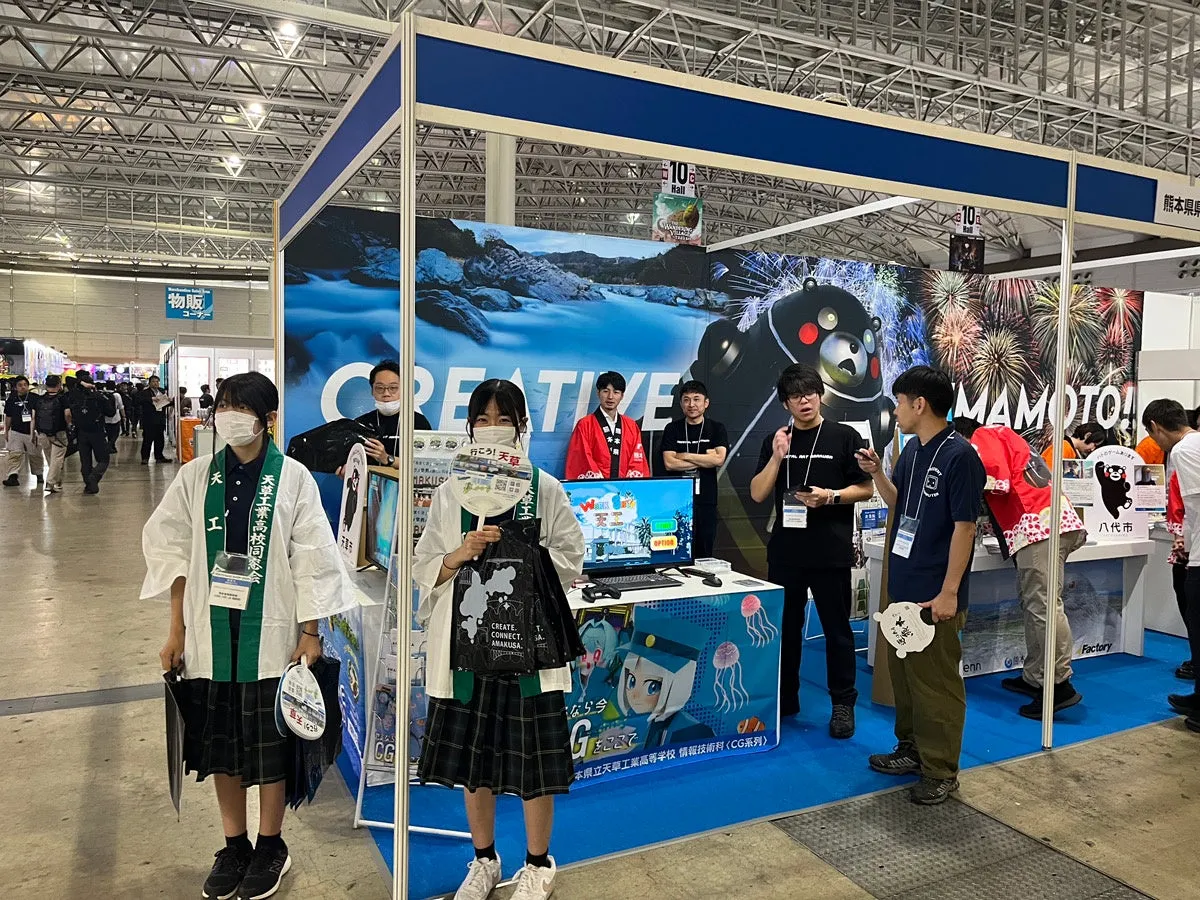 今年のTGSでは、天草工業高校の情報技術科と連携し、同校の生徒たちが開発したゲームが展示されました。特に注目されたのは、ゲームのCGアセット制作を担当した生徒2名がブースに参加し、来場者に直接ゲームをプレイしてもらう機会を得たことです。この経験は、生徒たちにとって非常に貴重であり、ゲーム業界における反響や興味を実感することができました。