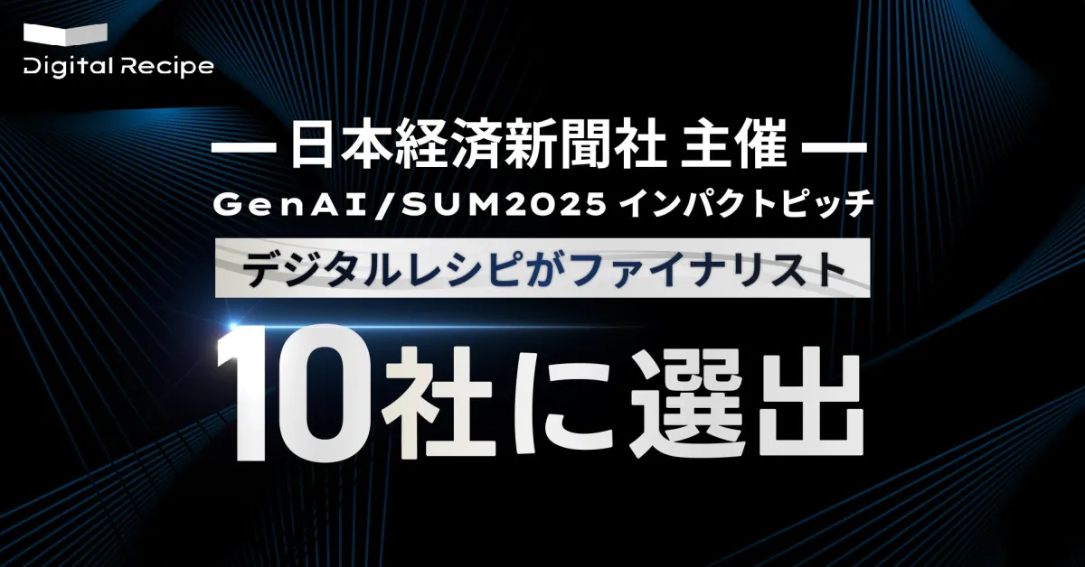 株式会社デジタルレシピ(東京・渋谷)は、人工知能の社会実装を目指すAI事業に取り組んでおり、最近日本経済新聞社(以下、日経)による「GenAI/SUM2025 インパクトピッチ」で10社のファイナリストに選ばれたことを発表しました。今回はこの取り組みや背景について詳しく解説します。