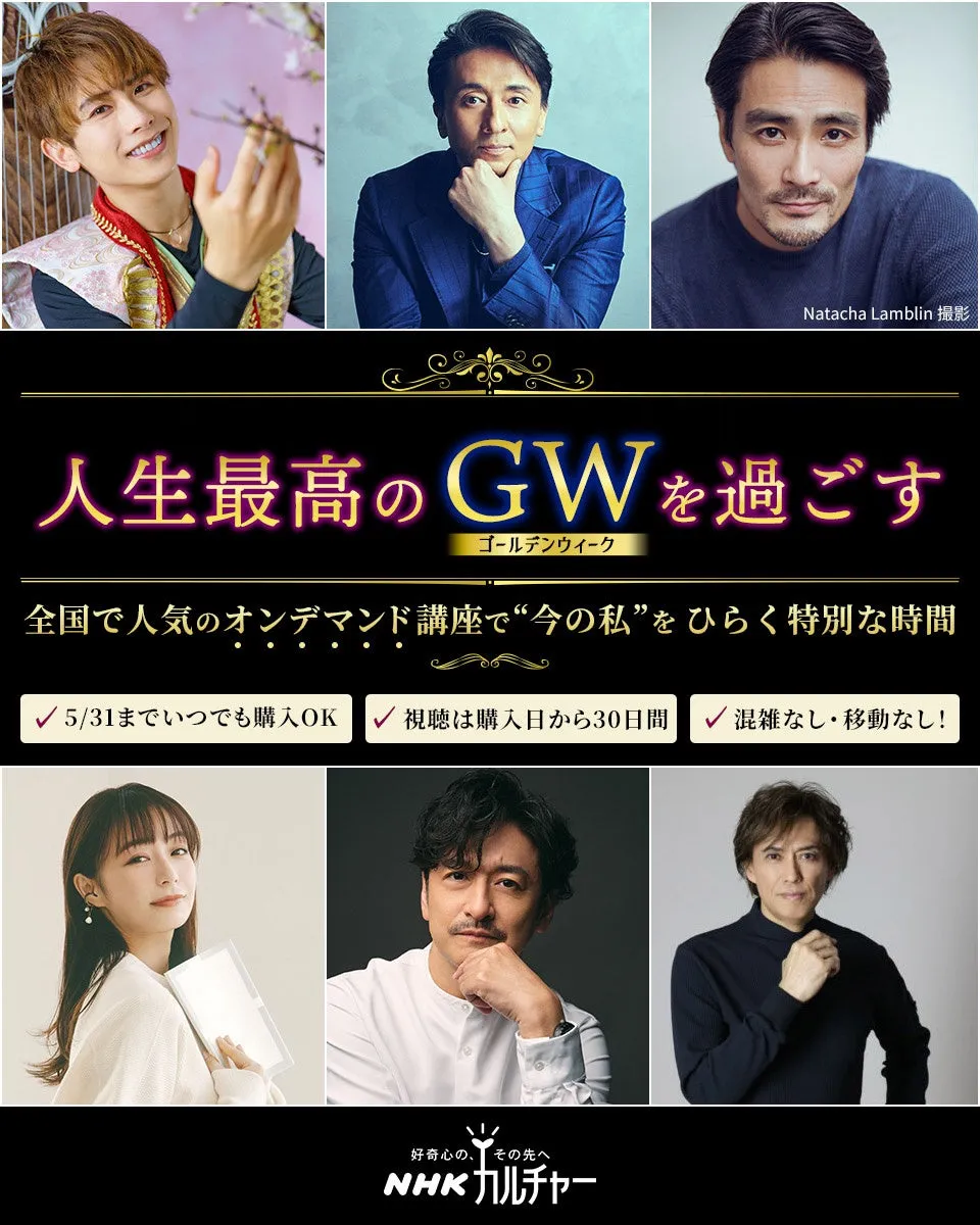 ゴールデンウィークが近づいてきました。今年の連休は、特別な体験を自宅で楽しんでみませんか?NHKカルチャーは「人生最高のゴールデンウィークを過ごす」をコンセプトに、全国で人気のオンデマンド講座特集を展開しています。これにより、混雑や移動のストレスから解放され、自由な時間を満喫できます。