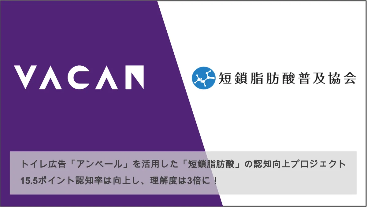一般社団法人短鎖脂肪酸普及協会と株式会社バカンが共同で進めたトイレ広告プロジェクト、その結果が注目されています。短鎖脂肪酸は腸内環境や健康維持に重要な役割を果たす物質ですが、一般消費者の認知度は依然として低いのが実情です。例えば、日常的にヨーグルトを摂取する人々の中でも、「短鎖脂肪酸」という言葉を知っているものの、その内容について理解しているのはわずか2〜3%に過ぎません。この状況を改善すべく立ち上がったのが、短鎖脂肪酸普及協会とバカンの協力によるこのプロジェクトです。