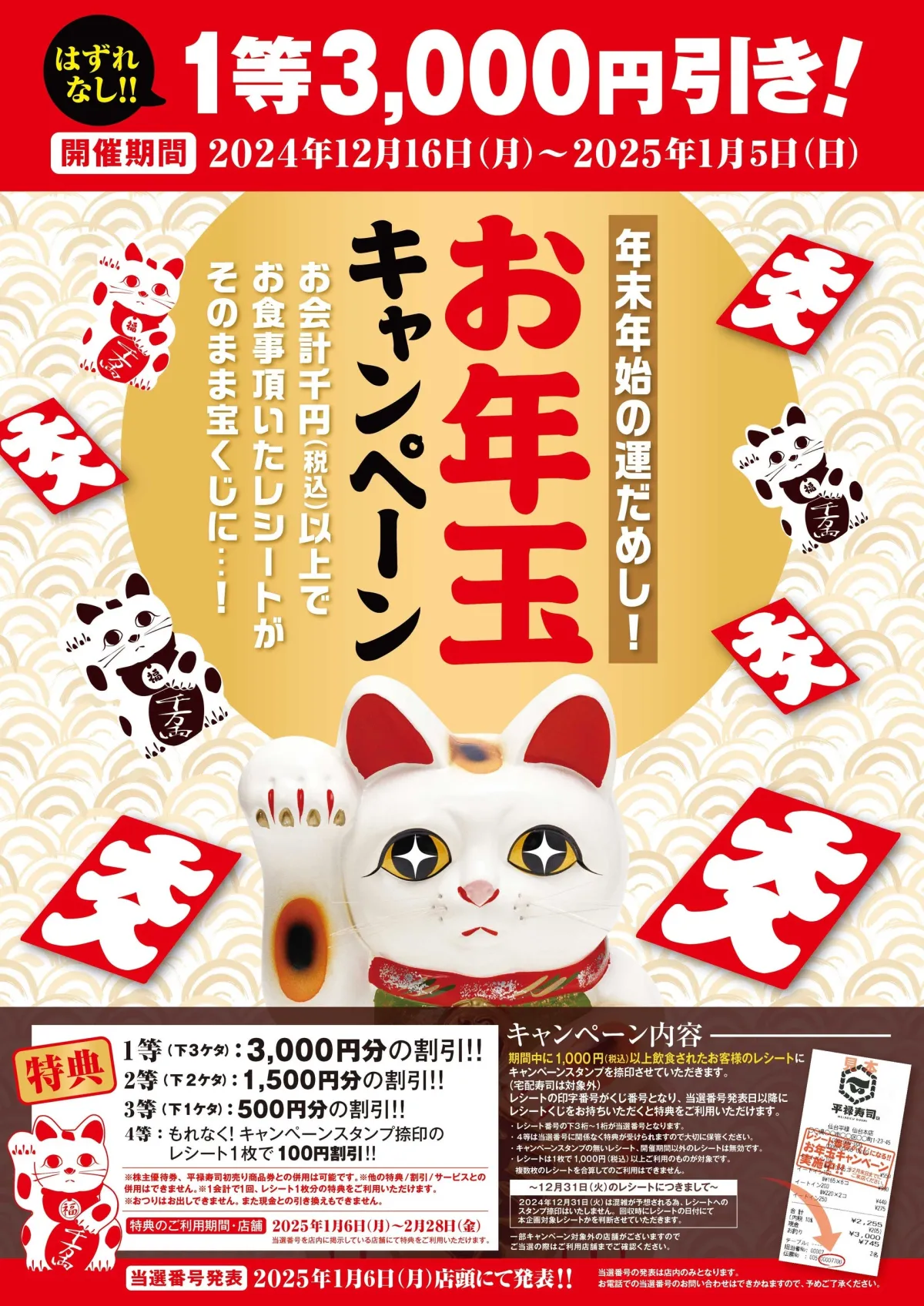 Wiki3: 平禄寿司 お年玉キャンペーン 冬の旬ネタ 北海道、東京都、神奈川県、宮城県、福島県 札幌市、八戸市、仙台市、郡山市、新宿区、横浜市
