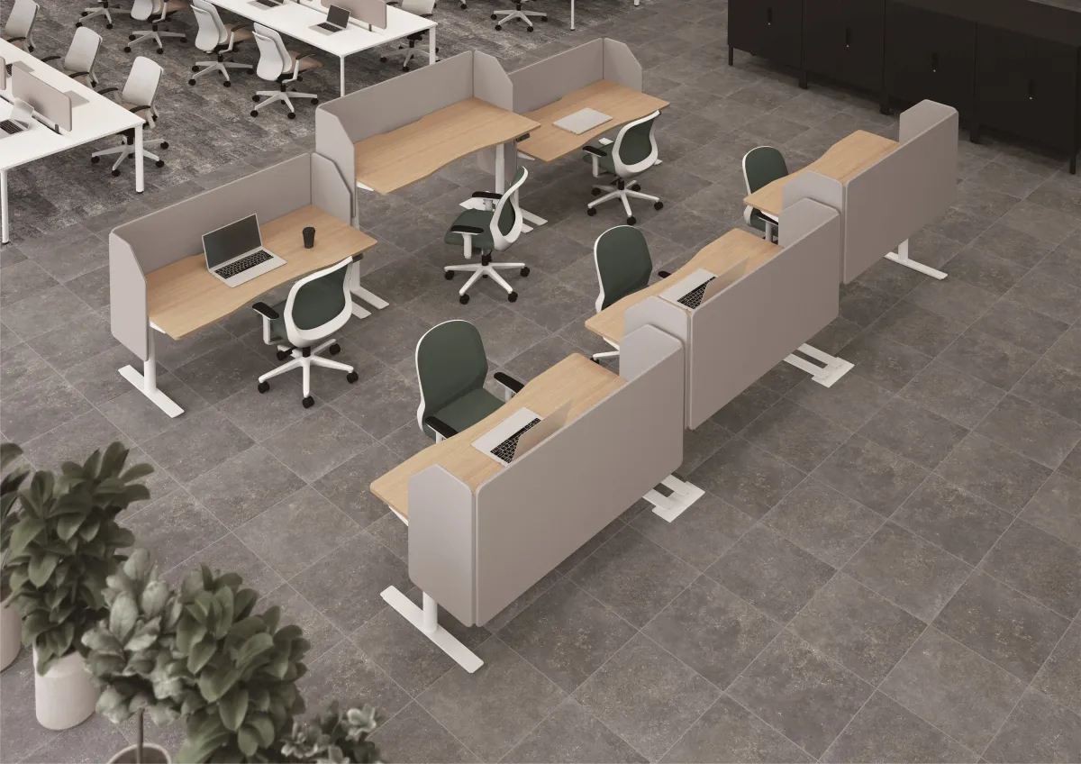 製品には、個人用作業向けのデスクタイプと、効率的な会議をサポートするテーブルタイプの2種類が用意されています。デスクは小型から広々としたワイドサイズまで多様なサイズを展開し、プライバシーを確保するためのフロントパネルも14色から選択可能です。テーブルタイプはストレート型、ひょうたん型、ビーンズ型など、多様な形状があり、用途に応じた運用が可能です。