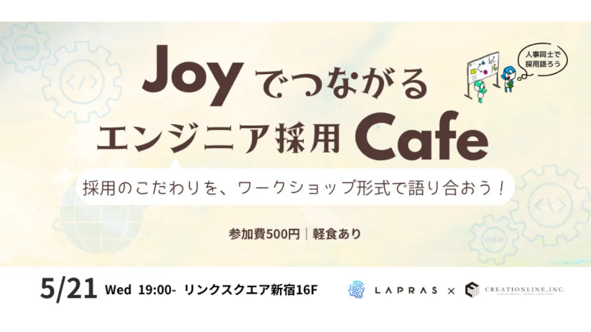 2025年5月21日、東京都渋谷区でエンジニア採用に特化した新しいイベント「Joyでつながるエンジニア採用Cafe」が開催されます。このイベントは、クリエーションライン株式会社とLAPRAS株式会社が共催し、エンジニア採用に関わる様々な立場の人々が集まり、交流し学ぶことを目的としています。