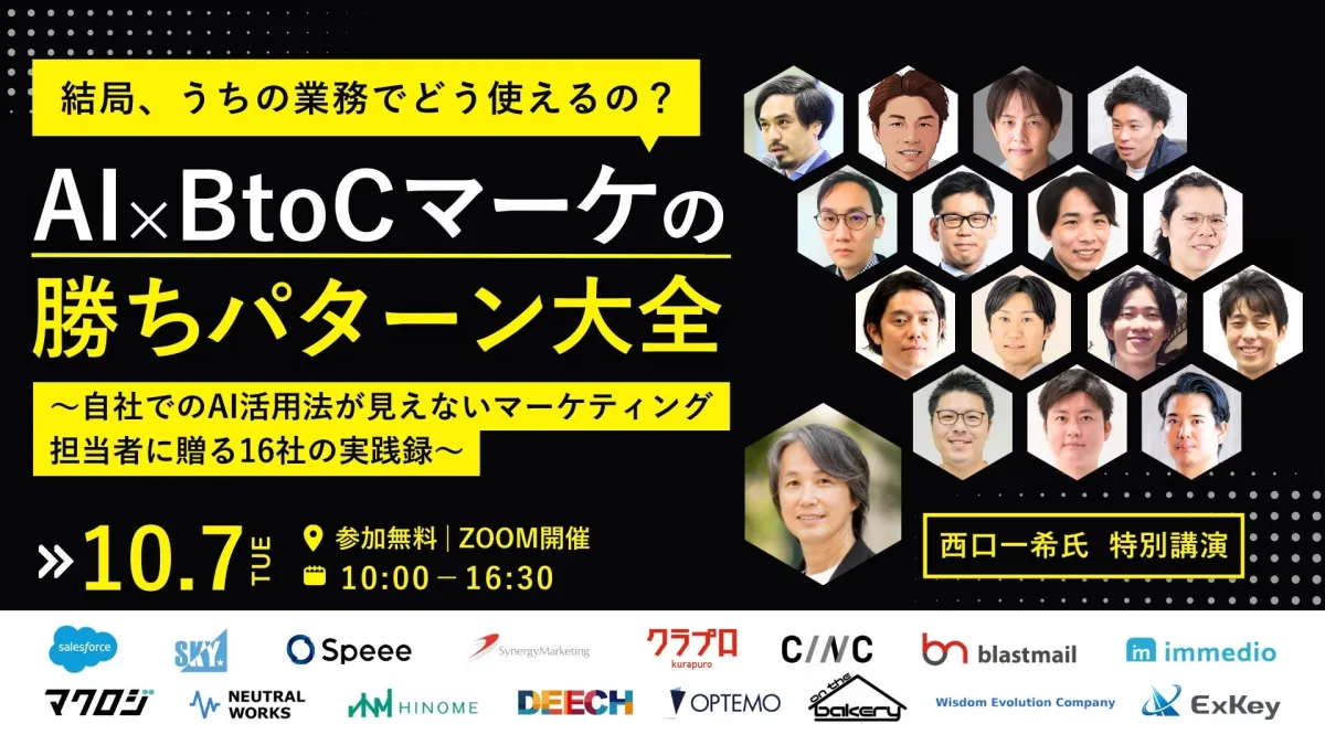 2025年10月7日、株式会社on the bakeryが主催するオンラインカンファレンス「結局、うちの業務でどう使えるの?AI×BtoCマーケの勝ちパターン大全」が開かれます。このイベントは、現在のマーケティングにおける課題を解決するための新しい手法として注目されているAI技術を活用した内容が豊富です。