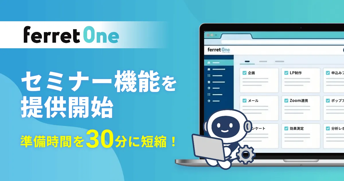 株式会社ベーシックが提供するBtoBマーケティングツール『ferret One』において、待望の「セミナー機能」が発表されました。これにより、セミナーの準備にかかる時間が従来の215分から30分に短縮されるという、驚くべき効率化が実現します。