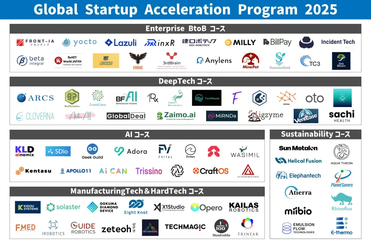 今回のプログラムには、DeepTechやAIの分野に注力する企業、製造業向けのプロダクトを開発する企業が多数参加しており、各企業はオンラインと現地プログラムに参加して支援を受けます。これにより、国際市場への展開を加速させる仕組みが整っています。