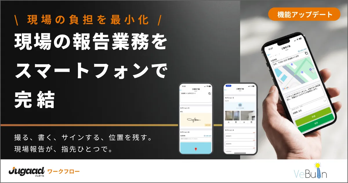 VeBuIn株式会社が提供する「ジュガール」は、現場の報告業務をスマホで完結させることを目指して大改良を行いました。これまでのワークフローシステムの枠を超え、ノーコードで多様な業務アプリを簡単に作成・運用できる新たな開発ツールとして生まれ変わりました。