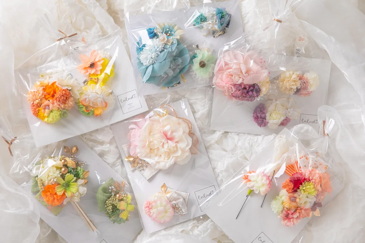 特別な日を迎える方々に朗報です。有限会社フォー・フィールズが運営するスタジオ華写・フォトアトリエ八千華では、今年も『luludi』の新作髪飾りを取り揃えました。ギリシャ語で「花」を意味する『luludi』は、美容のプロが手がけたハンドメイドの商品。まさにお子様の可愛らしさを一層引き立てる、特別な日のためにデザインされたアイテムがラインアップされています。