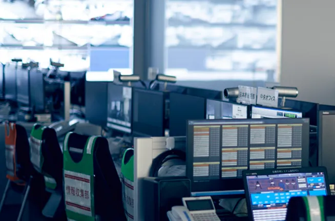 日本では、頻繁な自然災害と生産年齢人口の減少が進行しています。そのため、オフィスビルの運営において「安全・安心の確保」と「効率化・省人化」の両立が求められています。三井不動産の危機管理センターは24時間365日体制で、震度5強以上の地震が観測されると、緊急対策本部を立ち上げ、全国の情報を一元管理し、利用者への情報提供や機能の復旧を進める役割を果たしています。