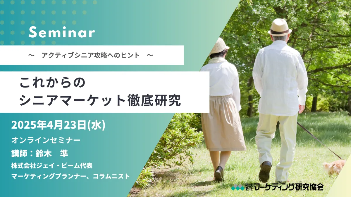 株式会社マーケティング研究協会が主催する「これからのシニアマーケット徹底研究セミナー」に参加し、変化するシニア市場の新たなマーケティング戦略を学ぶことができます。このセミナーは2025年4月23日に開催され、未来のシニア市場を探る絶好の機会となるでしょう。