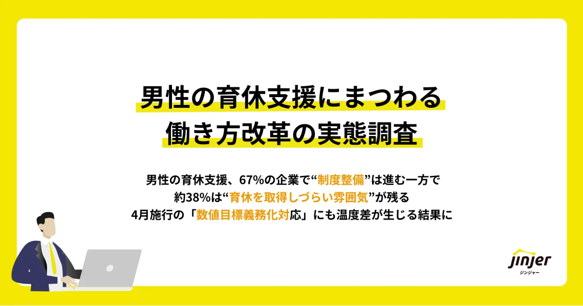 クラウド型人事労務システム「ジンジャー」を提供するjinjer株式会社が実施した調査によれば、企業における男性の育休支援の実態は複雑で、制度と現場のギャップが明らかになっています。この調査は、合計361名の企業の人事・総務担当者を対象に行われました。