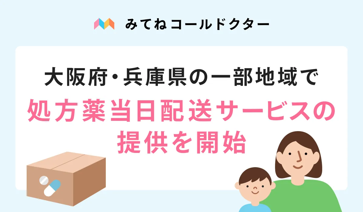 新たに加わるエリアには、大阪府の大阪市、豊中市、吹田市、守口市、東大阪市、そして兵庫県の尼崎市が含まれています。この拡大により、より多くの家族が手軽にオンライン診療を受け、必要な処方薬を当日中に自宅に配送してもらえるようになりました。