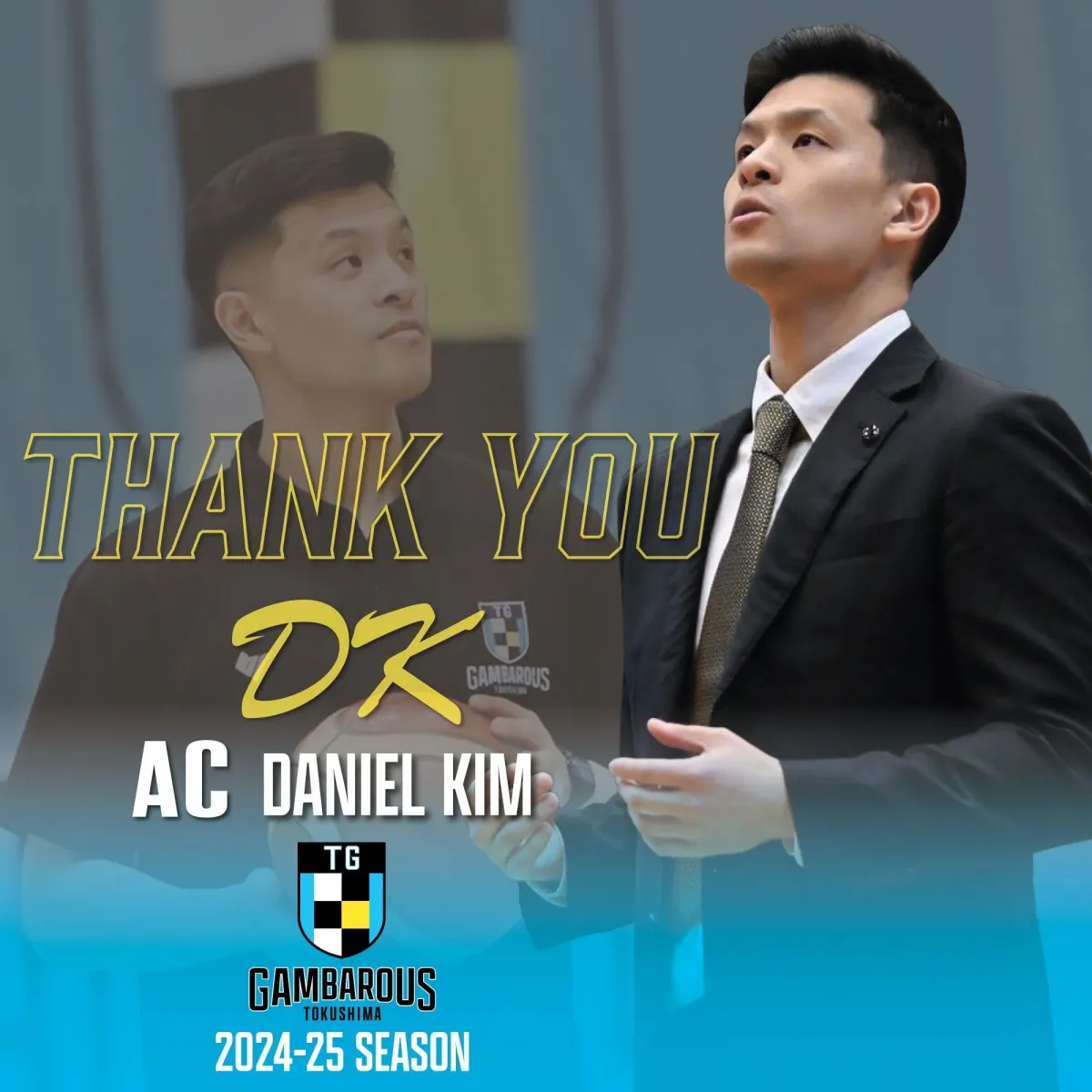 徳島ガンバロウズは、ダニエル・キムアシスタントコーチとの契約が2024-25シーズンをもって完了することを正式に発表しました。彼は、過去2年間にわたりチームに多大なる影響を与え、プロの舞台でそのスキルを磨いてきました。