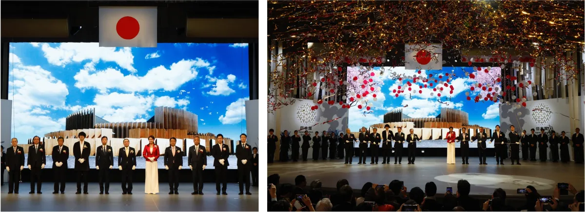 式典は盛況の中で進行し、くす玉の開披をもって正式に日本政府館の開館を祝いました。会場には拍手が響き渡り、出席者たちの期待が高まる瞬間が生まれました。
