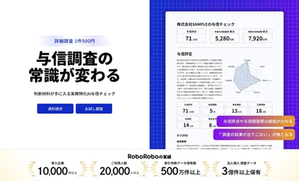 公式サイトで詳細を確認できます。現在は、RoboRoboコンプライアンスチェックのオプション機能として提供されています。これにより、従来の与信チェックに比べて、圧倒的な利便性が実現されています。
