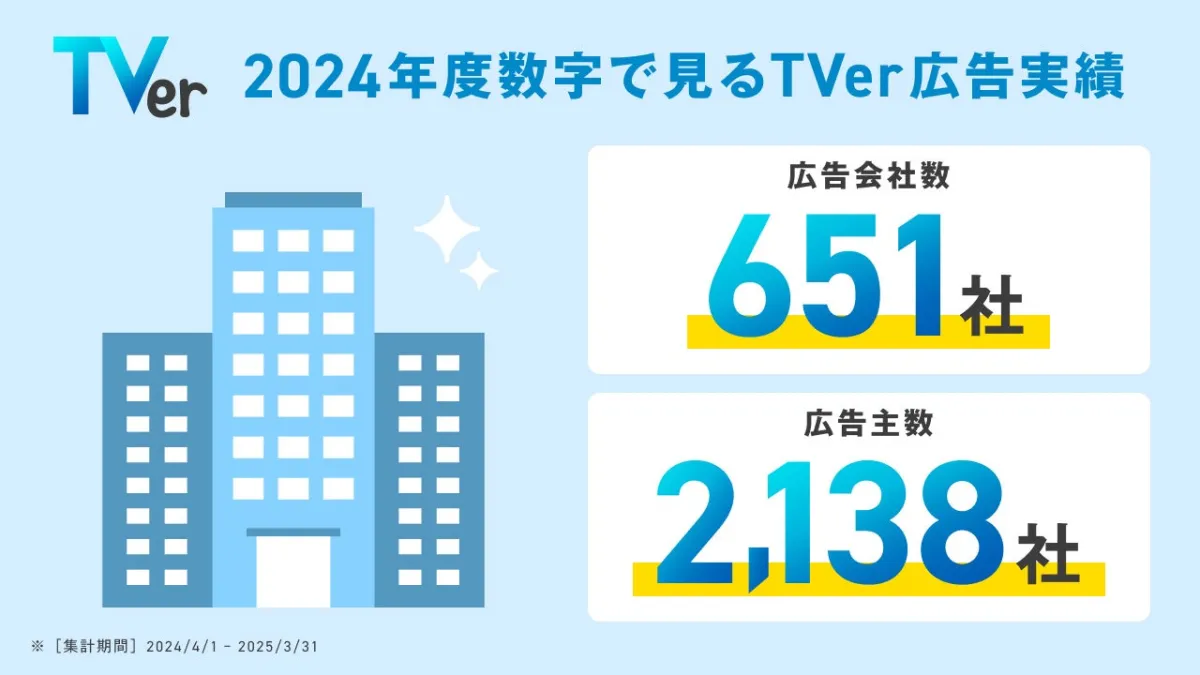 株式会社TVer(東京都港区)は、2024年度における「TVer広告」の実績を分析したレポート「数字で見るTVer広告」を発表しました。このレポートは、広告主や広告会社の数、クリエイティブの傾向、広告の効果など、多岐にわたるデータを提供しています。近年、その成長と活用法が進化を遂げているTVer広告について詳しく見ていきましょう。