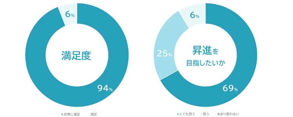 交流会の特徴として、参加者全員が「満足」「非常に満足」と回答した点が挙げられます。満足度はなんと100%、さらに94%の参加者が昇進意欲が向上したと感じています。この驚異的な数字は、当社が女性のキャリア形成支援に力を入れている証拠でもあります。主催メンバーは、交流を通じて女性社員同士が繋がり、それぞれのキャリアを考えるきっかけとなったと振り返っています。
