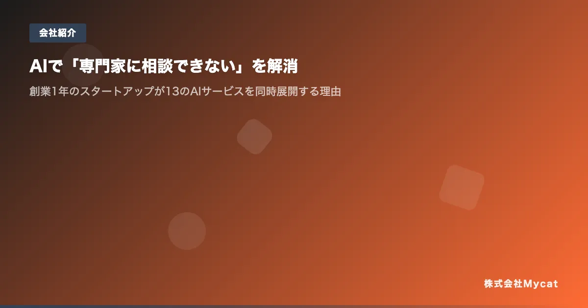 株式会社Mycatは、これらの課題をAIを駆使して解決し、誰もが専門的な知識にアクセスできる社会の実現を目指しています。
