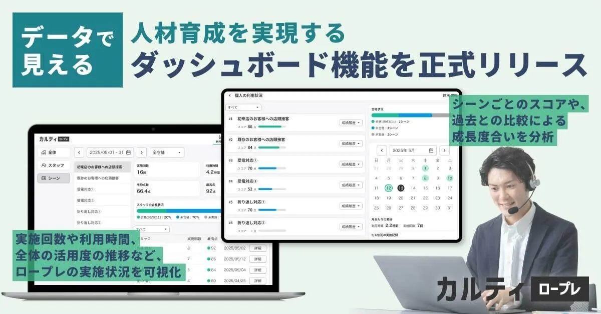 企業における人材育成は、常に進化を続けています。特に、営業や接客といった実践的な職種では、スキルの向上が業務の成果に直結します。そこで、株式会社Sapeetが開発した生成AIを活用したロールプレイングシステム「カルティ ロープレ」には、いま新しい機能が追加されました。それが、ダッシュボード機能です。この機能は、ロープレの実施状況やその成果を数字で視覚化することを目的としています。