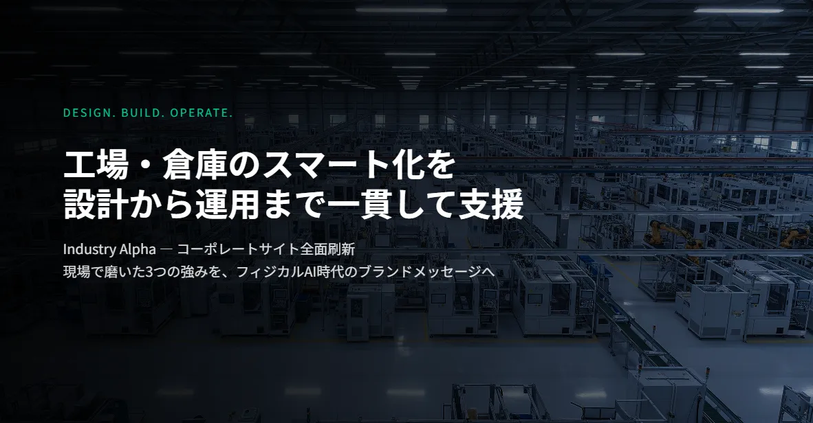 Industry Alpha株式会社は、東京都板橋区に本社を構え、スマート工場及び倉庫の実現に向けたソリューションを提供する企業です。最近、同社はコーポレートサイトを全面的にリニューアルし、自社の強みを新たにブランディングし直しました。サイトの刷新に伴い、Industry Alphaは「Designing the future of smart factories & warehouses」というメッセージを打ち出し、3つの特長を軸に今後のビジョンを示しています。