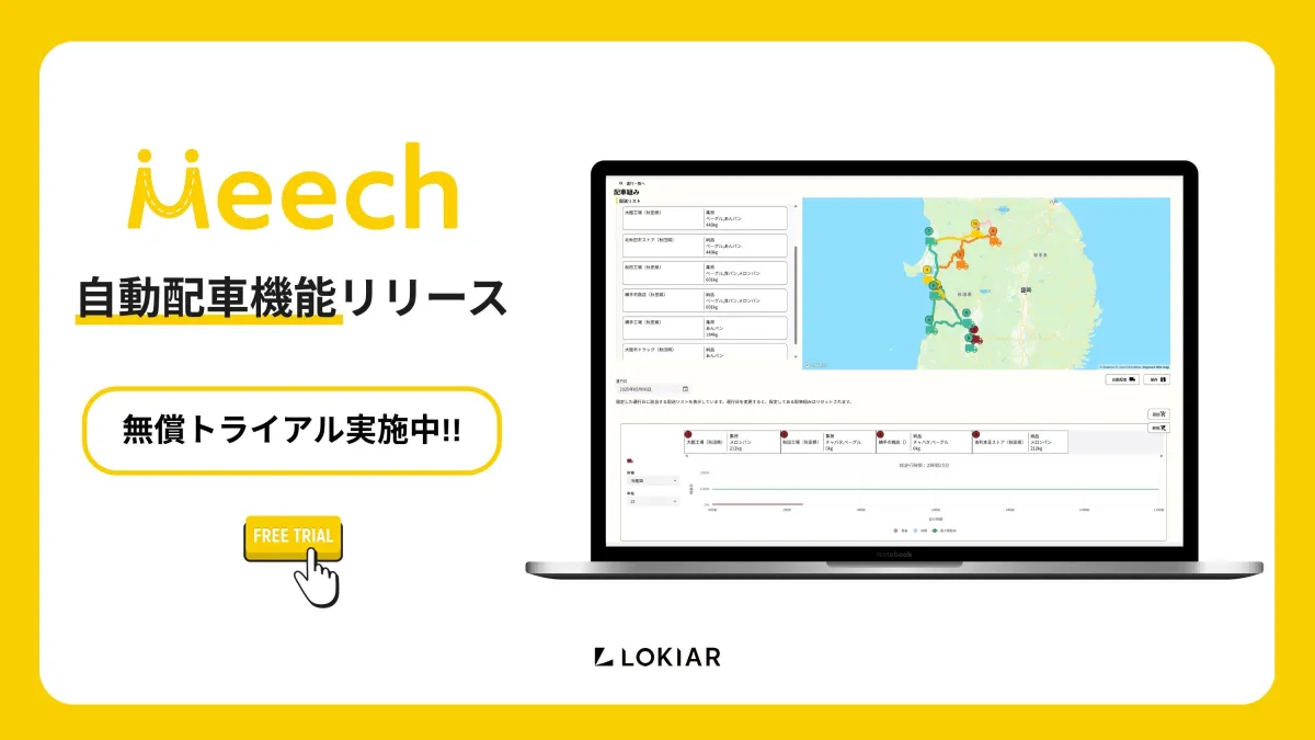 株式会社LOKIAR(東京都北区)は、物流管理サービス『Meech』に新機能「自動配車機能」をリリースしました。この機能は、配送業務において最適な配車手配とルート設定を自動化することで、効率的な業務運営をサポートします。