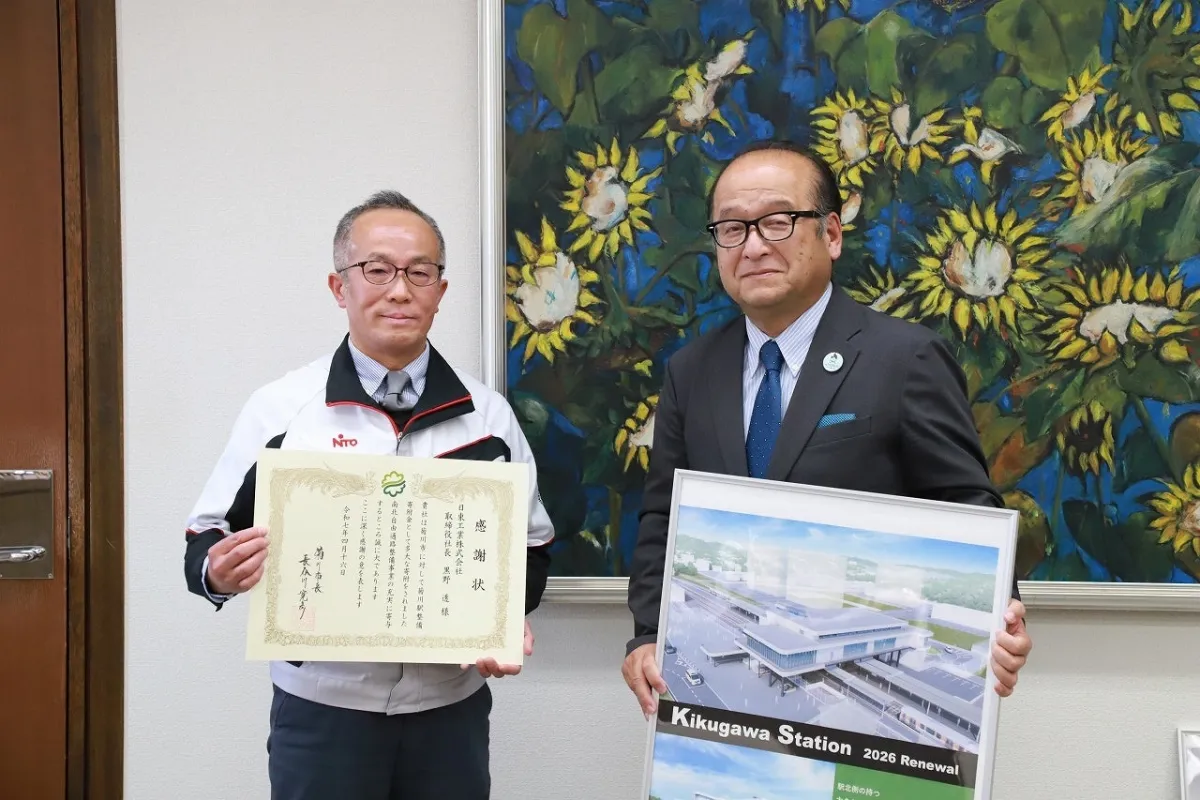 2023年4月16日、菊川市役所では日東工業に対して感謝状が贈呈されました。長谷川市長から感謝状を受け取った日東工業の執行役員佐藤氏は、地域の貢献活動の必要性を強調。彼は「地域社会に対する責任を感じており、今後とも力を入れていく」との抱負を述べました。今回の寄付を通じて、地域との結びつきが一層強まることが期待されます。