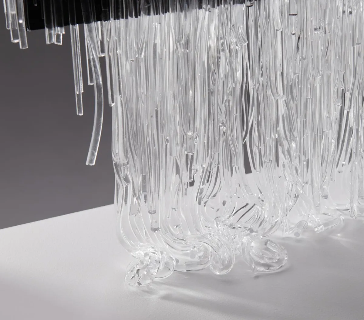 後藤は、自らの手を最小限に介入させ、自然現象そのものを「共同制作者」として迎え入れています。例えば、ガラスを吊り下げ、熱を加えることで、重力や熱の力を巧みに利用するのです。このプロセスを通じて、自然の見えない力が物質として具現化され、観賞者に新たな体験を提供します。